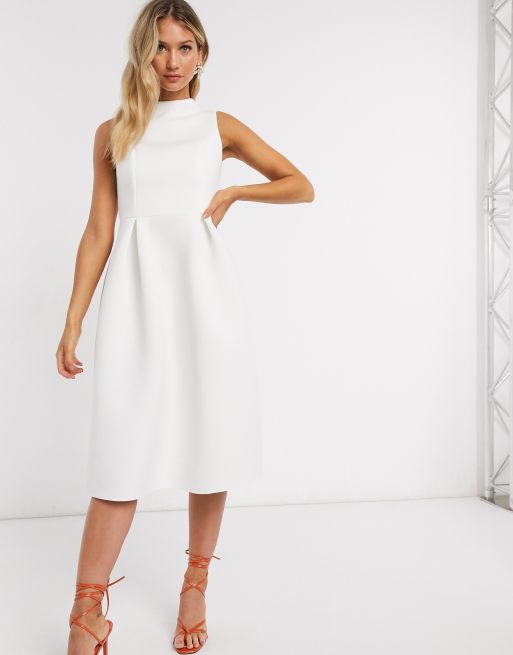 Asos Design High Neck Sleeveless Midi Prom Dress With Lace Up Back In White Asos